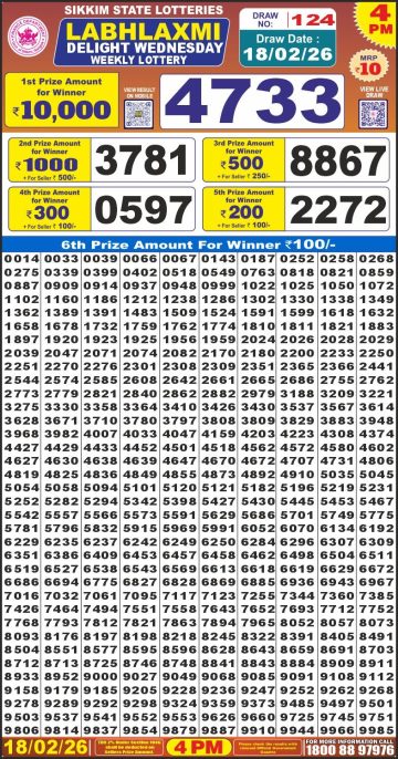 Labh Laxmi Delight Wednesday Weekly Lottery 4pm Result 18-02-26