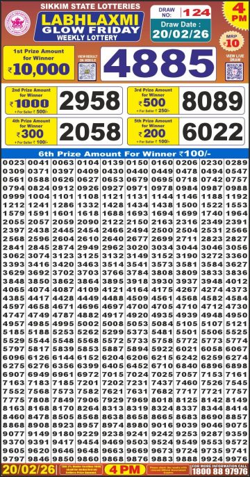 Labh Laxmi Glow Friday Weekly Lottery 4pm Result 20-02-26