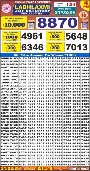 Labh Laxmi Joy Saturday Weekly Lottery 4pm Result 21-02-26