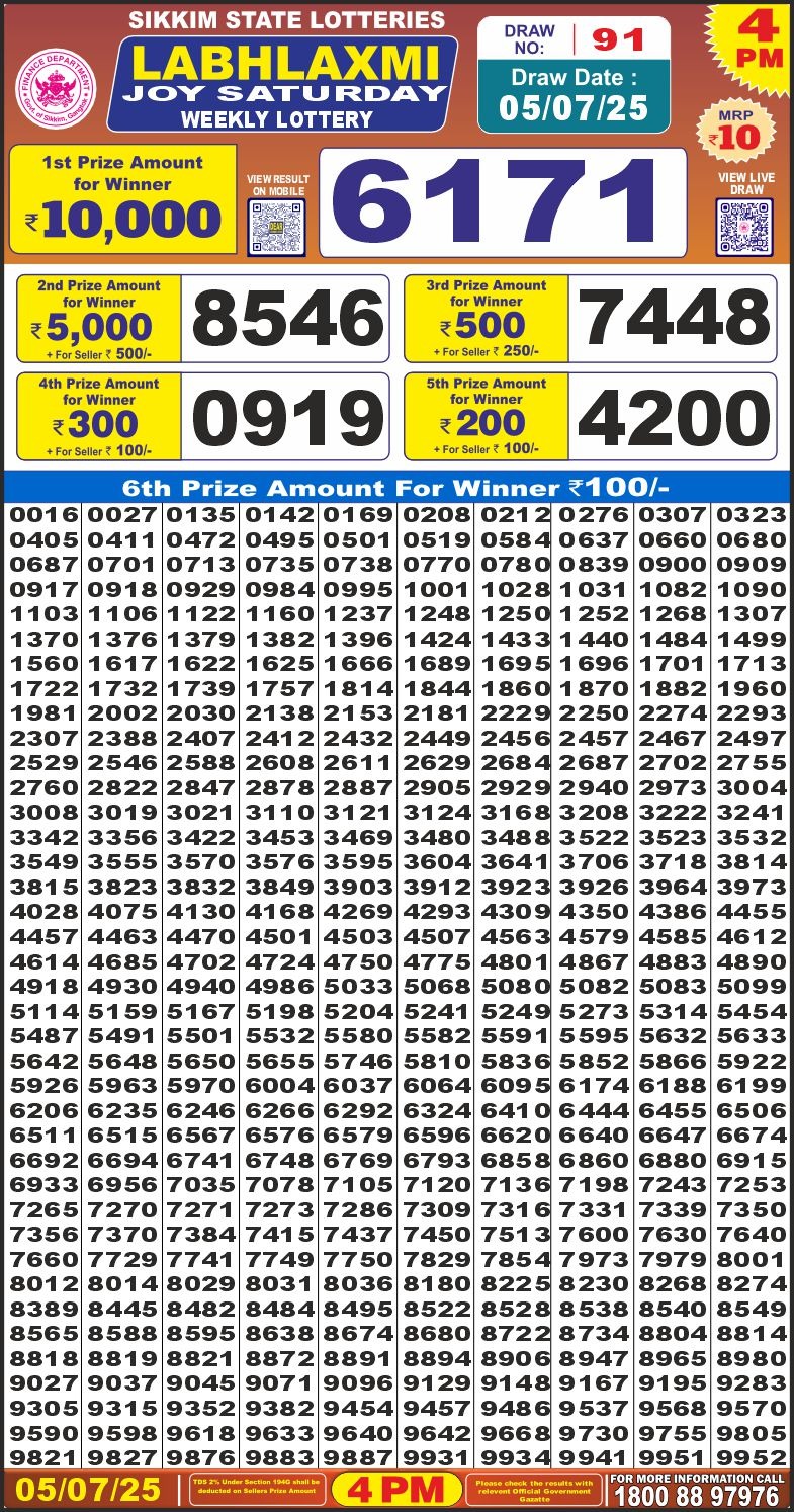 Labhlaxmi glad Thursday weekly lottery 4 pm result 3-7-25