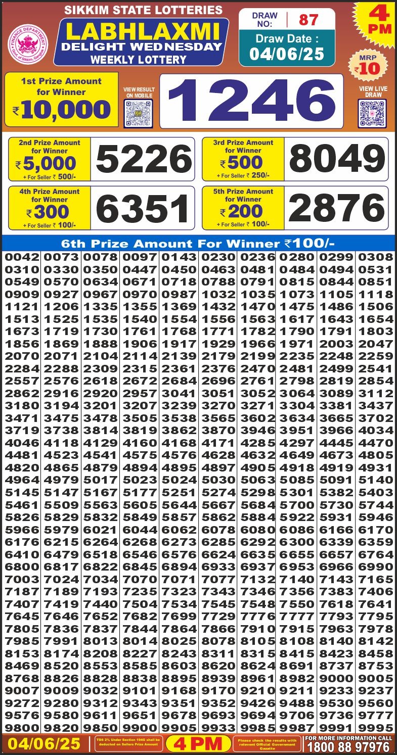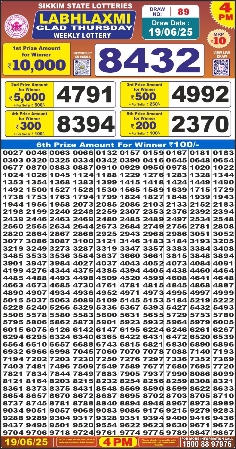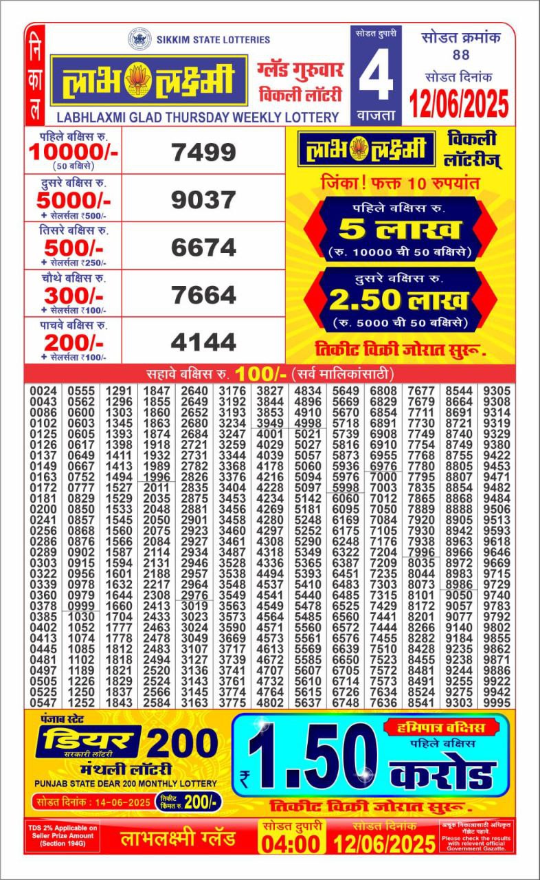 Labhlaxmi glad Thursday weekly lottery 4 pm result 12-6-25