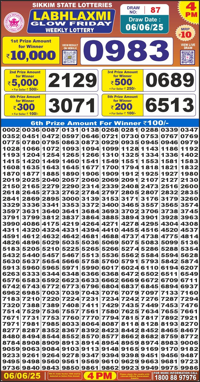 Labhlaxmi glow friday weekly lottery 4 pm result 6-6-25