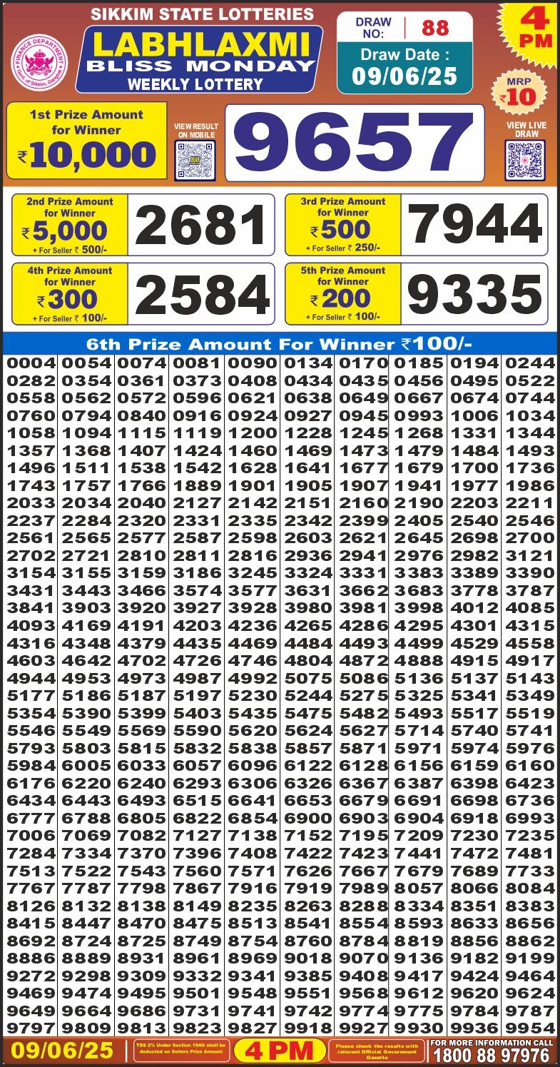 Labh Laxmi bliss monday weekly lottery 4 pm result 9-6-25