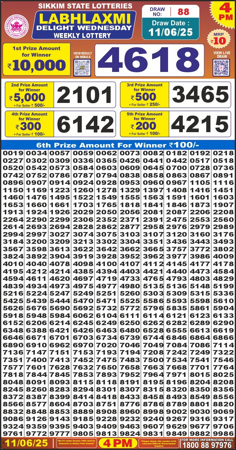 Labh Laxmi delight wednesday weekly lottery 4 pm result 11-6-25