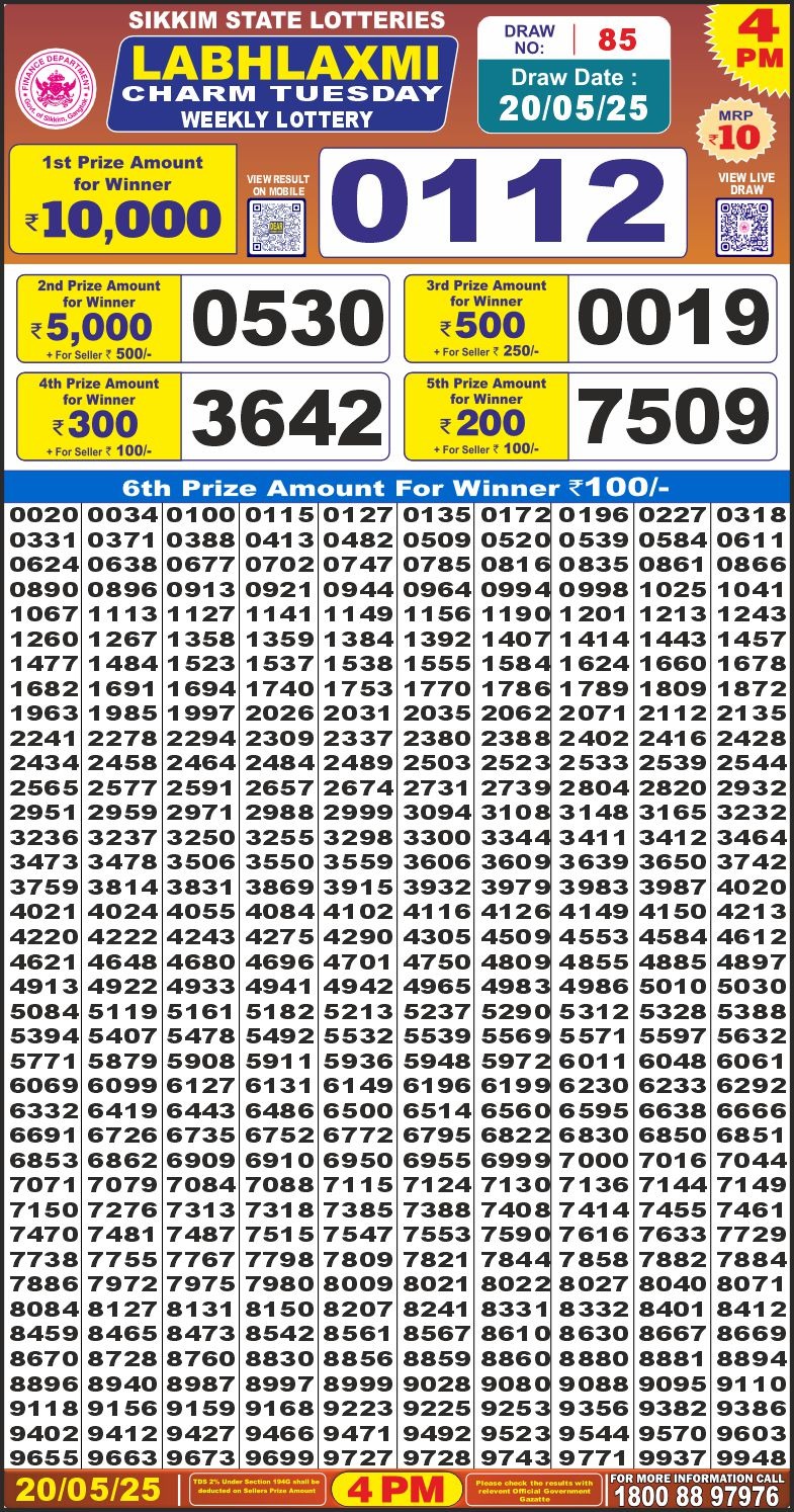 Labh Laxmi charm tuesday weekly lottery 4 pm result 20-5-25