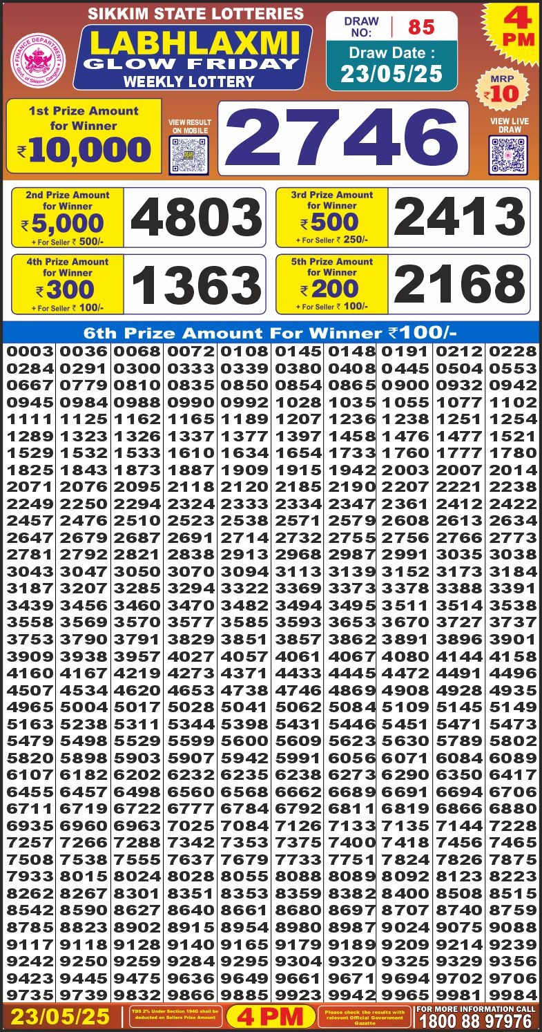 Labhlaxmi glow friday weekly lottery 4 pm result 23-5-25