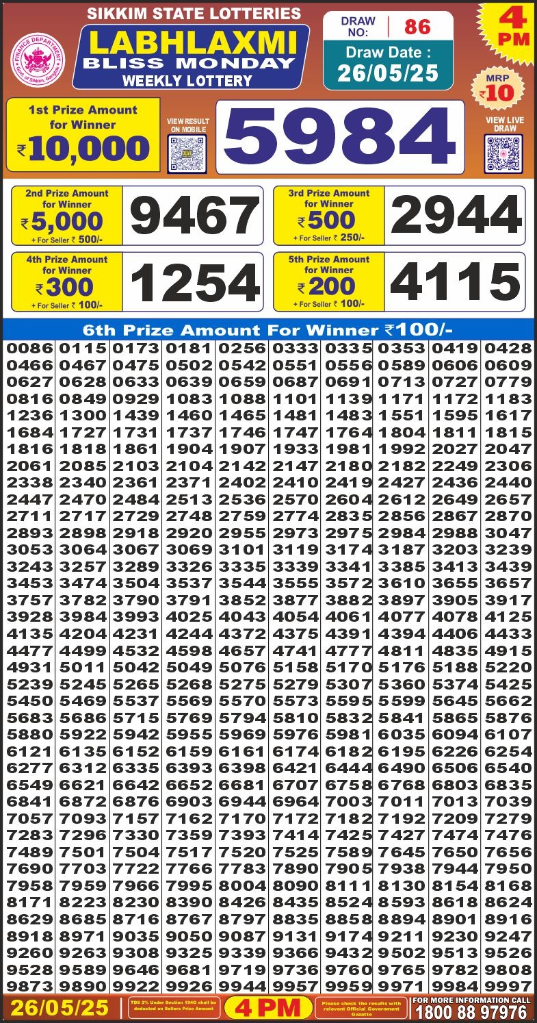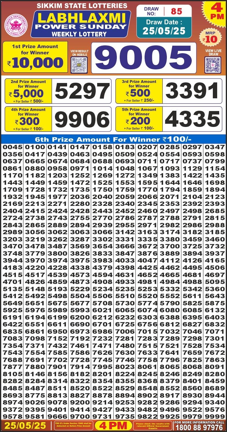 Labhlaxmi power sunday weekly lottery 4 pm result 25-5-25