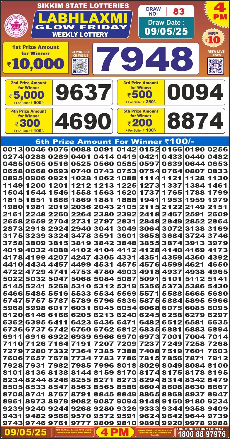 Labhlaxmi glow friday weekly lottery 4 pm result 9-5-25