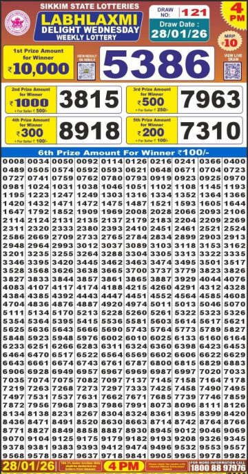 Labh Laxmi Delight Wednesday Weekly Lottery 4pm Result 28-01-26