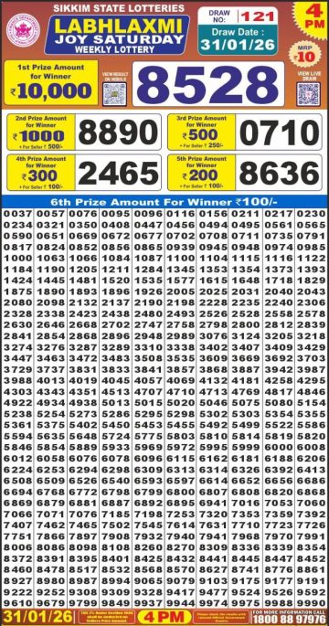 Labh Laxmi Joy Saturday Weekly Lottery 4pm Result 31-01-26