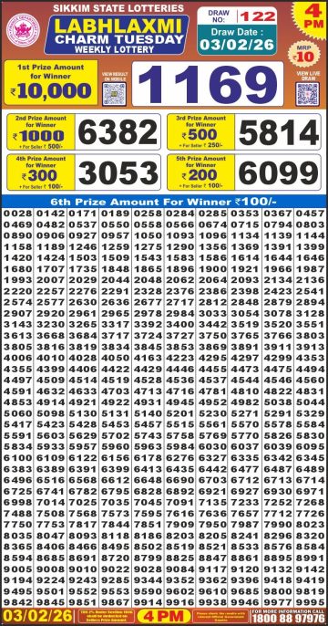 Labh Laxmi Charm Tuesday Weekly Lottery 4pm Result 03-02-26