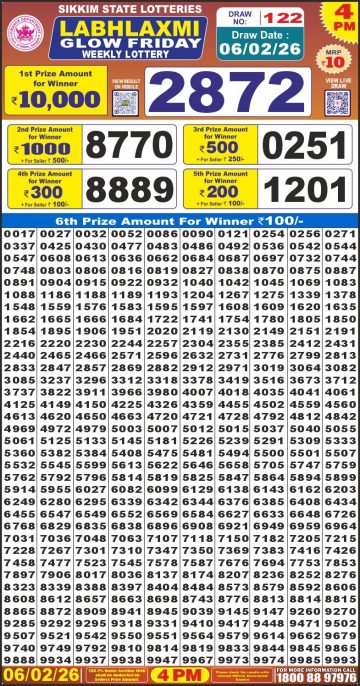 Labh Laxmi Glow Friday Weekly Lottery 4pm Result 06-02-26