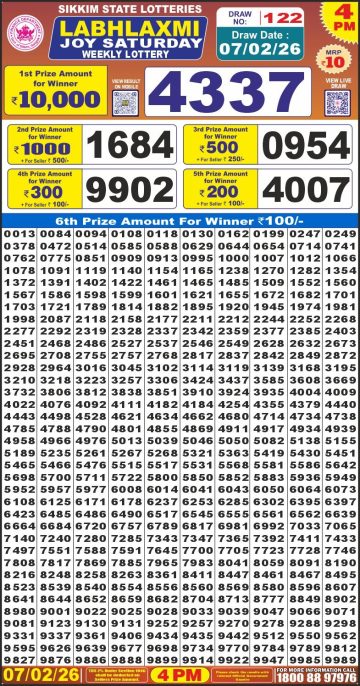 Labh Laxmi Joy Saturday Weekly Lottery 4pm Result 07-02-26