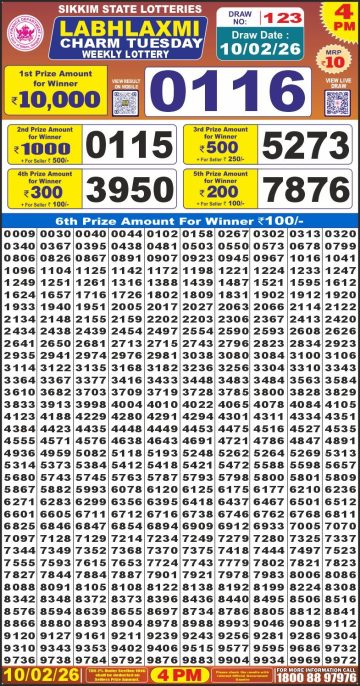 Labh Laxmi Charm Tuesday Weekly Lottery 4pm Result 10-02-26