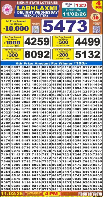 Labh Laxmi Delight Wednesday Weekly Lottery 4pm Result 11-02-26