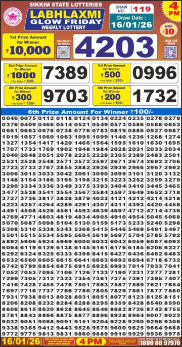 Labh Laxmi Glow Friday Weekly Lottery 4pm Result 16-01-26