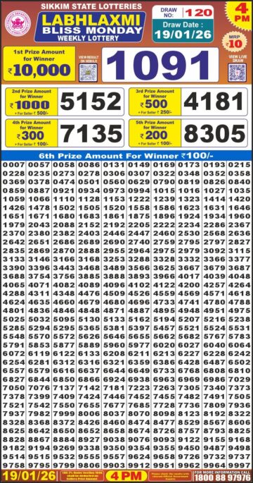 Labh Laxmi Bliss Monday Weekly Lottery 4pm Result 19-01-26