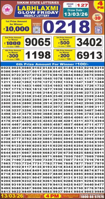 Labh Laxmi Glow Friday Weekly Lottery 4pm Result 13-03-26