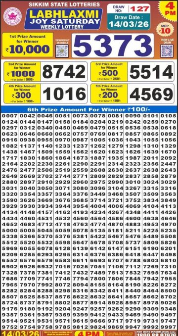 Labh Laxmi Joy Saturday Weekly Lottery 4pm Result 14-03-26