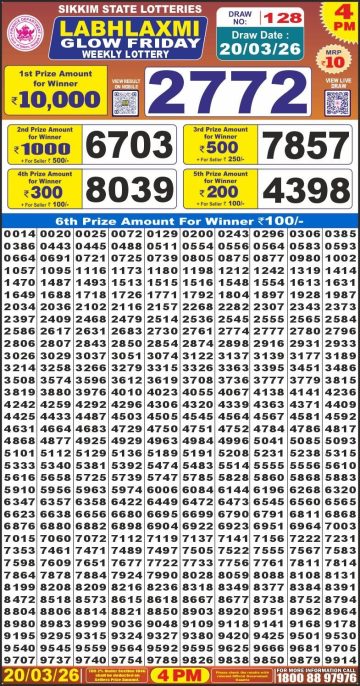 Labh Laxmi Glow Friday Weekly Lottery 4pm Result 20-03-26