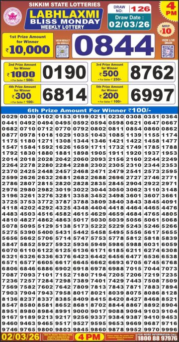 Labh Laxmi Bliss Monday Weekly Lottery 4pm Result 02-03-26