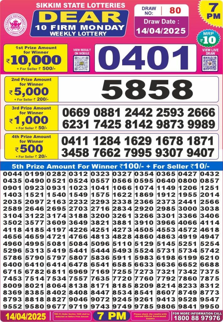 Dear 10 firm monday weekly lottery 7 pm result 14-4-25 Results Editorial Staff April 14, 2025 Leave a Comment on Dear 10 firm monday weekly lottery 7 pm result 14-4-25 Posted in Dear 10 Lottery 7 PM Result Share: XFacebookPinterestRedditVKDiggLinkedinMix Related Results Dear 10 Acacia Sunday Weekly Lottery 7 PM Result 21-09-25 Dear 10 Cypress Saturday Weekly Lottery 7 PM Result 20-09-25 Dear 10 Conifer Friday Weekly Lottery 7 PM Result 19-09-25 Dear 10 Oak Thursday Weekly Lottery 7 PM Result 18-09-25 Dear 10 Cedar Wednesday Weekly Lottery 7 PM Result 17-09-25 Dear 10 Pine Tuesday Weekly Lottery 7 PM Result 16-09-25 Dear 10 Maple Monday Weekly Lottery 7 PM Result 15-09-25 Author: Results Editorial Staff
