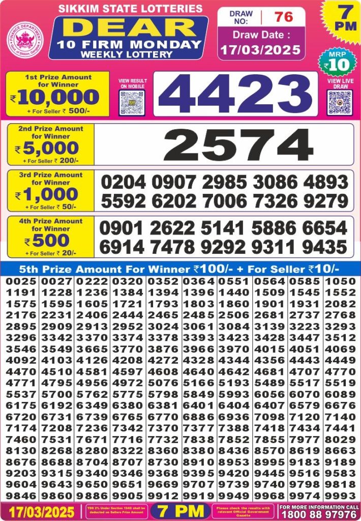 Dear 10 firm monday weekly lottery 7 pm result 17-3-25 site editor March 17, 2025 Leave a Comment on Dear 10 firm monday weekly lottery 7 pm result 17-3-25 Posted in Dear 10 Lottery 7 PM Result Share: XFacebookPinterestRedditVKDiggLinkedinMix Related Results Dear 10 Acacia Sunday Weekly Lottery 7 PM Result 21-09-25 Dear 10 Cypress Saturday Weekly Lottery 7 PM Result 20-09-25 Dear 10 Conifer Friday Weekly Lottery 7 PM Result 19-09-25 Dear 10 Oak Thursday Weekly Lottery 7 PM Result 18-09-25 Dear 10 Cedar Wednesday Weekly Lottery 7 PM Result 17-09-25 Dear 10 Pine Tuesday Weekly Lottery 7 PM Result 16-09-25 Dear 10 Maple Monday Weekly Lottery 7 PM Result 15-09-25 Author: site editor