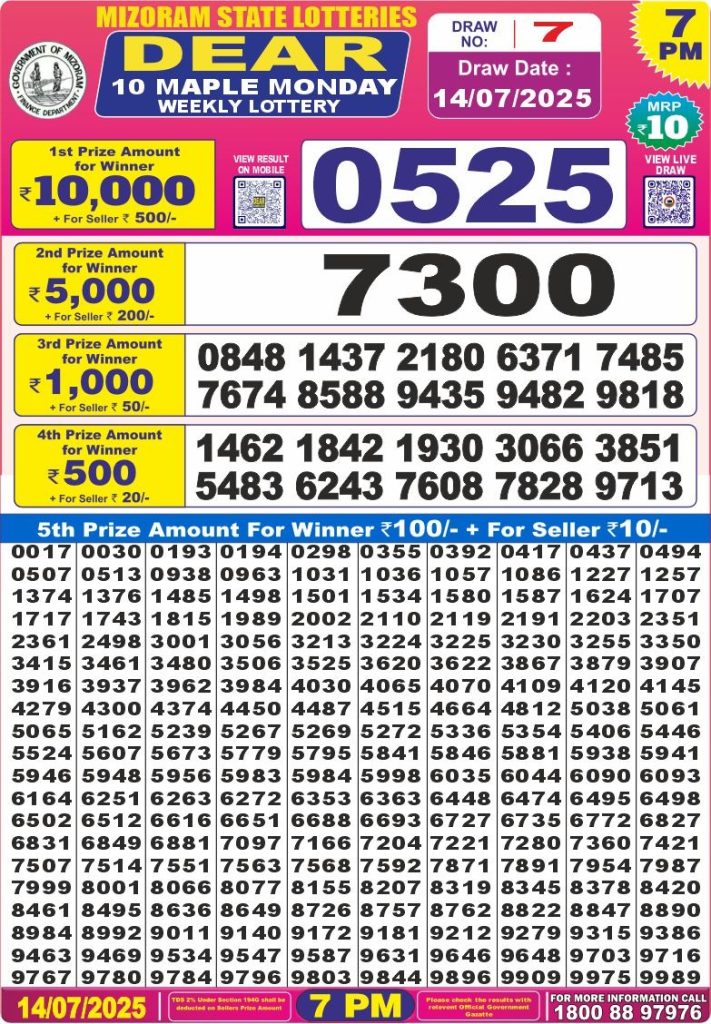 Dear 10 Maple monday weekly lottery 7 pm result 14-7-25 Results Editorial Staff July 14, 2025 Leave a Comment on Dear 10 Maple monday weekly lottery 7 pm result 14-7-25 Posted in Dear 10 Lottery 7 PM Result Share: XFacebookPinterestRedditVKDiggLinkedinMix Related Results Dear 10 Acacia Sunday Weekly Lottery 7 PM Result 21-09-25 Dear 10 Cypress Saturday Weekly Lottery 7 PM Result 20-09-25 Dear 10 Conifer Friday Weekly Lottery 7 PM Result 19-09-25 Dear 10 Oak Thursday Weekly Lottery 7 PM Result 18-09-25 Dear 10 Cedar Wednesday Weekly Lottery 7 PM Result 17-09-25 Dear 10 Pine Tuesday Weekly Lottery 7 PM Result 16-09-25 Dear 10 Maple Monday Weekly Lottery 7 PM Result 15-09-25 Author: Results Editorial Staff