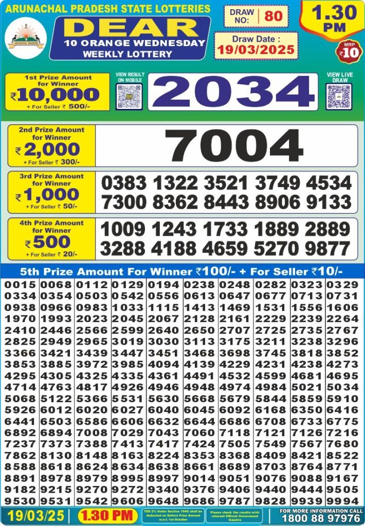 Dear 10 orange Wednesday weekly lottery 1:30 pm result 19-3-25
