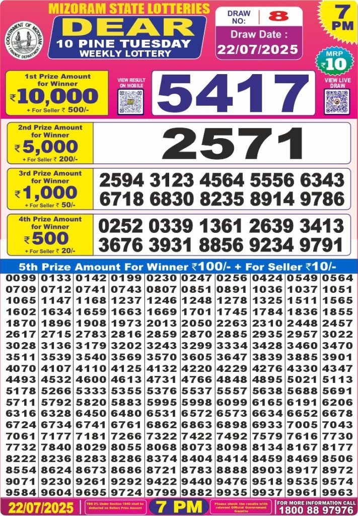 Dear 10 Pine tuesday weekly lottery 7 pm result 22-7-25 Results Editorial Staff July 22, 2025 Leave a Comment on Dear 10 Pine tuesday weekly lottery 7 pm result 22-7-25 Posted in Dear 10 Lottery 7 PM Result Share: XFacebookPinterestRedditVKDiggLinkedinMix Related Results Dear 10 Acacia Sunday Weekly Lottery 7 PM Result 21-09-25 Dear 10 Cypress Saturday Weekly Lottery 7 PM Result 20-09-25 Dear 10 Conifer Friday Weekly Lottery 7 PM Result 19-09-25 Dear 10 Oak Thursday Weekly Lottery 7 PM Result 18-09-25 Dear 10 Cedar Wednesday Weekly Lottery 7 PM Result 17-09-25 Dear 10 Pine Tuesday Weekly Lottery 7 PM Result 16-09-25 Dear 10 Maple Monday Weekly Lottery 7 PM Result 15-09-25 Author: Results Editorial Staff