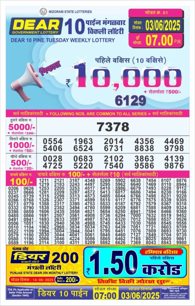 Dear 10 pine tuesday weekly lottery 7 pm result 3-6-25 Results Editorial Staff June 3, 2025 Leave a Comment on Dear 10 pine tuesday weekly lottery 7 pm result 3-6-25 Posted in Dear 10 Lottery 7 PM Result Share: XFacebookPinterestRedditVKDiggLinkedinMix Related Results Dear 10 Acacia Sunday Weekly Lottery 7 PM Result 21-09-25 Dear 10 Cypress Saturday Weekly Lottery 7 PM Result 20-09-25 Dear 10 Conifer Friday Weekly Lottery 7 PM Result 19-09-25 Dear 10 Oak Thursday Weekly Lottery 7 PM Result 18-09-25 Dear 10 Cedar Wednesday Weekly Lottery 7 PM Result 17-09-25 Dear 10 Pine Tuesday Weekly Lottery 7 PM Result 16-09-25 Dear 10 Maple Monday Weekly Lottery 7 PM Result 15-09-25 Author: Results Editorial Staff