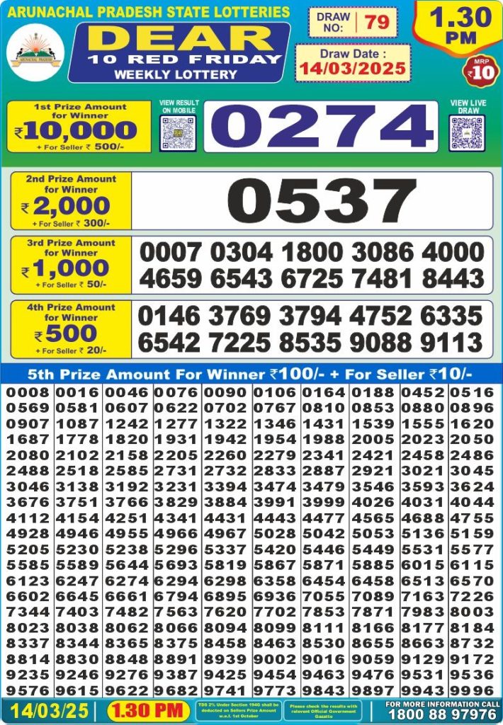 Dear 10 red friday weekly lottery 1:30 pm result 14-3-25 site editor March 14, 2025 Leave a Comment on Dear 10 red friday weekly lottery 1:30 pm result 14-3-25 Posted in Dear 10 Lottery 1.30 PM Result, Results Share: XFacebookPinterestRedditVKDiggLinkedinMix Related Results Punjab State Dear 200 Monthly Lottery 6pm Result 07-02-26 Punjab State Lohri Bumper Lottery Result 2026 Live Updates Dear X-Mas Bumper 6pm Lottery Result 27-12-25 Punjab State Dear 100 Monthly Lottery 7pm Result 09-12-25 Punjab State Lottery Dear 100 Monthly 7pm Result 11-11-2025 Dear 2000 Monthly Lottery 7pm Result 08-11-25 Check Now Dear Puja Bumper Lottery Result 11-10-25 Publish Author: site editor