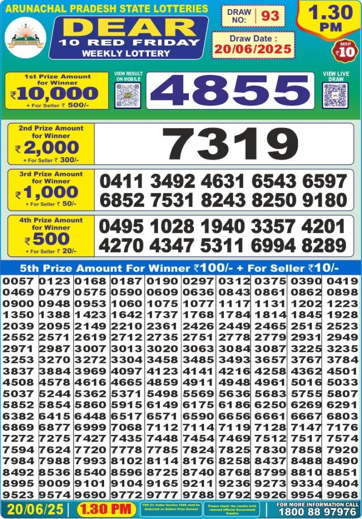 Dear 10 red friday weekly lottery 1:30 pm result 20-6-25