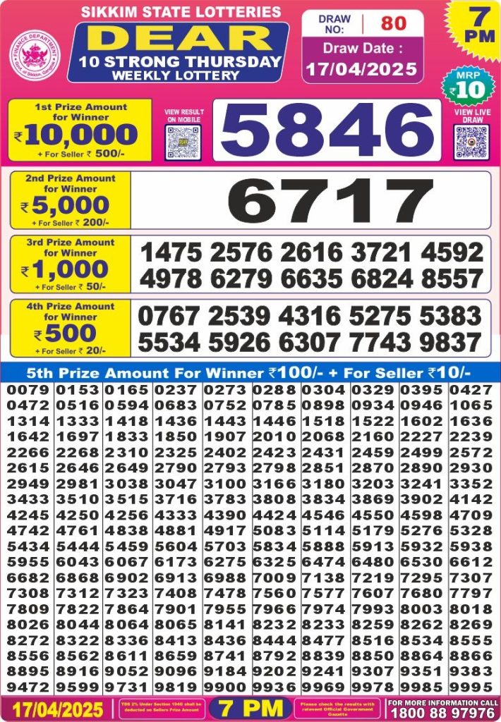 Dear 10 strong Thursday weekly lottery 7 pm result 17-4-25 Results Editorial Staff April 17, 2025 Leave a Comment on Dear 10 strong Thursday weekly lottery 7 pm result 17-4-25 Posted in Dear 10 Lottery 7 PM Result Share: XFacebookPinterestRedditVKDiggLinkedinMix Related Results Dear 10 Acacia Sunday Weekly Lottery 7 PM Result 21-09-25 Dear 10 Cypress Saturday Weekly Lottery 7 PM Result 20-09-25 Dear 10 Conifer Friday Weekly Lottery 7 PM Result 19-09-25 Dear 10 Oak Thursday Weekly Lottery 7 PM Result 18-09-25 Dear 10 Cedar Wednesday Weekly Lottery 7 PM Result 17-09-25 Dear 10 Pine Tuesday Weekly Lottery 7 PM Result 16-09-25 Dear 10 Maple Monday Weekly Lottery 7 PM Result 15-09-25 Author: Results Editorial Staff