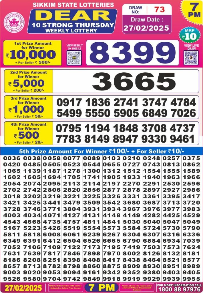 Dear 10 strong Thursday weekly lottery 7 pm result 27-2-25 site editor February 27, 2025 Leave a Comment on Dear 10 strong Thursday weekly lottery 7 pm result 27-2-25 Posted in Dear 10 Lottery 7 PM Result Share: XFacebookPinterestRedditVKDiggLinkedinMix Related Results Dear 10 Acacia Sunday Weekly Lottery 7 PM Result 21-09-25 Dear 10 Cypress Saturday Weekly Lottery 7 PM Result 20-09-25 Dear 10 Conifer Friday Weekly Lottery 7 PM Result 19-09-25 Dear 10 Oak Thursday Weekly Lottery 7 PM Result 18-09-25 Dear 10 Cedar Wednesday Weekly Lottery 7 PM Result 17-09-25 Dear 10 Pine Tuesday Weekly Lottery 7 PM Result 16-09-25 Dear 10 Maple Monday Weekly Lottery 7 PM Result 15-09-25 Author: site editor