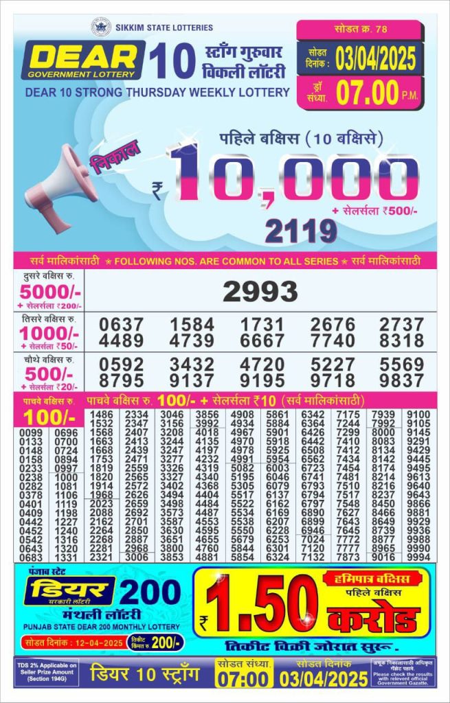 Dear 10 strong Thursday weekly lottery 7 pm result 3-4-25 Results Editorial Staff April 3, 2025 Leave a Comment on Dear 10 strong Thursday weekly lottery 7 pm result 3-4-25 Posted in Dear 10 Lottery 7 PM Result Share: XFacebookPinterestRedditVKDiggLinkedinMix Related Results Dear 10 Acacia Sunday Weekly Lottery 7 PM Result 21-09-25 Dear 10 Cypress Saturday Weekly Lottery 7 PM Result 20-09-25 Dear 10 Conifer Friday Weekly Lottery 7 PM Result 19-09-25 Dear 10 Oak Thursday Weekly Lottery 7 PM Result 18-09-25 Dear 10 Cedar Wednesday Weekly Lottery 7 PM Result 17-09-25 Dear 10 Pine Tuesday Weekly Lottery 7 PM Result 16-09-25 Dear 10 Maple Monday Weekly Lottery 7 PM Result 15-09-25 Author: Results Editorial Staff