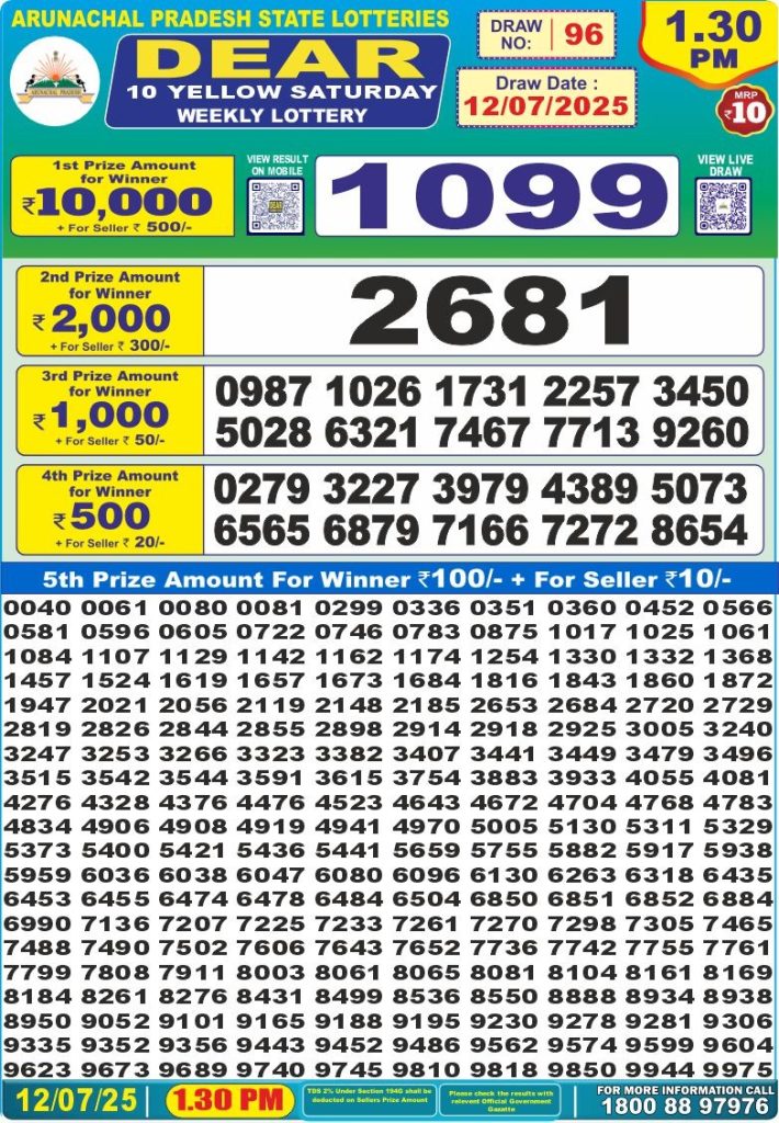 Dear 10 Yellow Saturday weekly lottery 1:30 pm result 12-7-25 Results Editorial Staff July 12, 2025 Leave a Comment on Dear 10 Yellow Saturday weekly lottery 1:30 pm result 12-7-25 Posted in Dear 10 Lottery 1.30 PM Result Share: XFacebookPinterestRedditVKDiggLinkedinMix Related Results Dear 10 Violet Sunday Weekly Lottery 1:30 PM Result 24-08-25 Dear 10 Yellow Saturday Weekly Lottery 1:30 PM Result 23-08-25 Dear 10 Red Friday Weekly Lottery 1:30 PM Result 22-08-25 Dear 10 Pink Thursday Weekly Lottery 1:30 PM Result 21-08-25 Dear 10 Orange Wednesday Weekly Lottery 1:30 PM Result 20-08-25 Dear 10 Green Tuesday Weekly Lottery 1:30 PM 19-08-25 Dear 10 Blue Monday Weekly Lottery 1:30 PM Result 18-08-25 Author: Results Editorial Staff