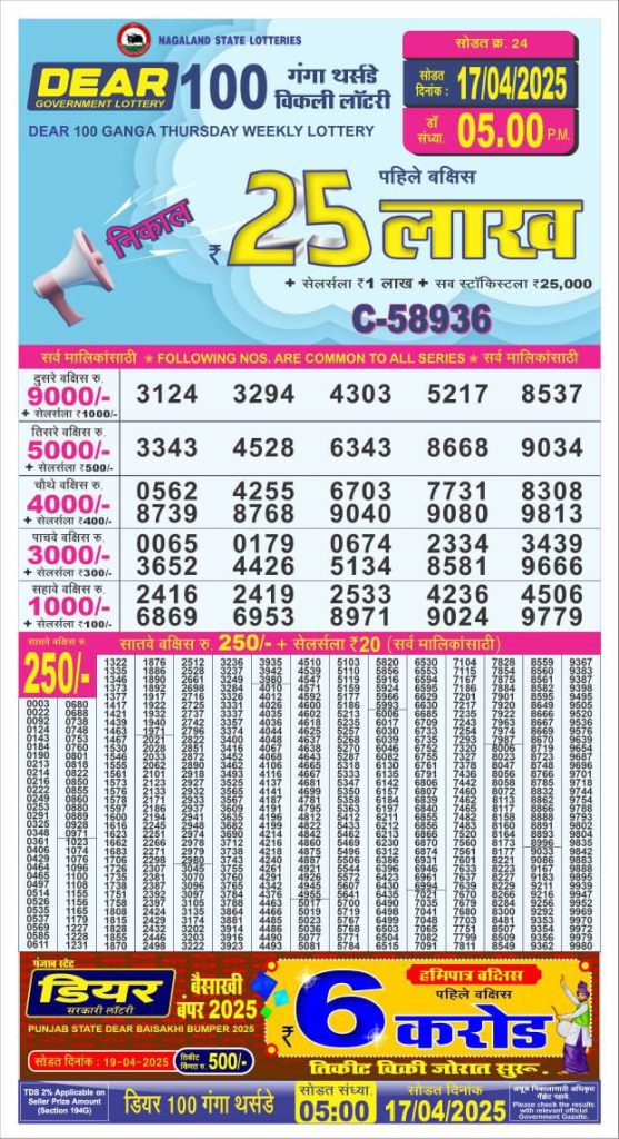 Dear 100 ganga Thursday weekly lottery 5 pm result 17-4-25 Results Editorial Staff April 17, 2025 Leave a Comment on Dear 100 ganga Thursday weekly lottery 5 pm result 17-4-25 Posted in Dear 100 Lottery 5 PM Result Share: XFacebookPinterestRedditVKDiggLinkedinMix Related Results Dear 100 gomti Saturday weekly lottery 5 pm result 26-7-25 Dear 100 ganga Thursday weekly lottery 5 pm result 24-7-25 Dear 100 beas tuesday weekly lottery 5 pm result 22-7-25 Dear 100 gomti Saturday weekly lottery 5 pm result 19-7-25 Dear 100 ganga Thursday weekly lottery 5 pm result 17-7-25 Dear 100 beas tuesday weekly lottery 5 pm result 15-7-25 Dear 100 gomti Saturday weekly lottery 5 pm result 12-7-25 Author: Results Editorial Staff