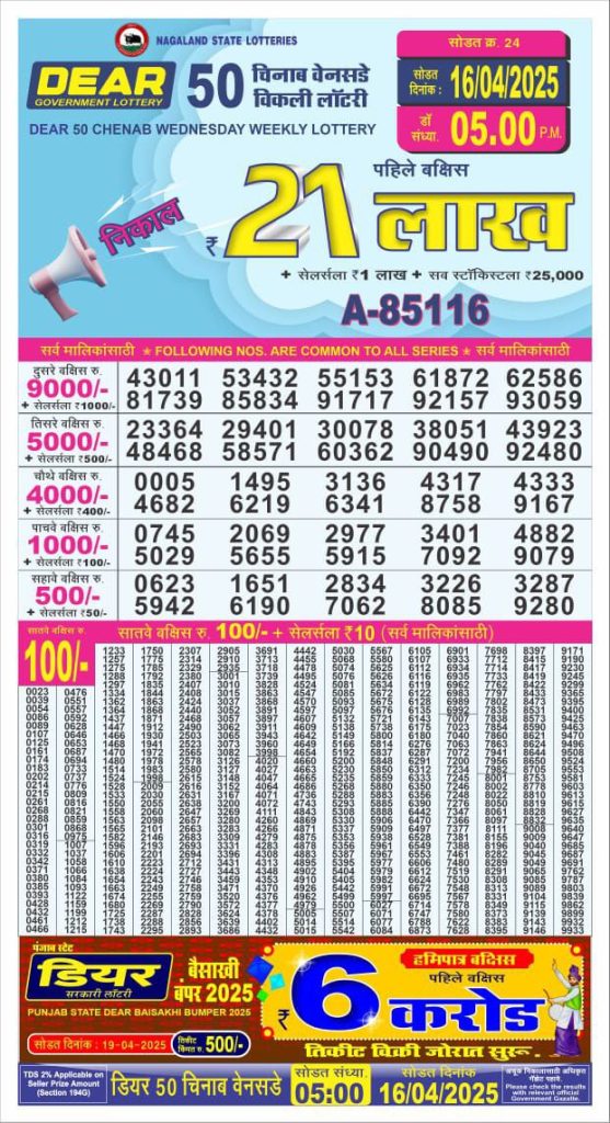 Dear 50 chenab Wednesday weekly lottery 5 pm result 16-4-25 Results Editorial Staff April 16, 2025 Leave a Comment on Dear 50 chenab Wednesday weekly lottery 5 pm result 16-4-25 Posted in Dear 50 Lottery 5 PM Result Share: XFacebookPinterestRedditVKDiggLinkedinMix Related Results Dear 50 Ravi Sunday Weekly Lottery 5 PM Result 27-07-25 Dear 50 sutluj friday weekly lottery 5 pm result 25-7-25 Dear 50 chenab Wednesday weekly lottery 5 pm result 23-7-25 Dear 50 jhelum monday weekly lottery 5 pm result 21-7-25 Dear 50 ravi sunday weekly lottery 5 pm result 20-7-25 Dear 50 sutluj friday weekly lottery 5 pm result 18-7-25 Dear 50 chenab Wednesday weekly lottery 5 pm result 16-7-25 Author: Results Editorial Staff