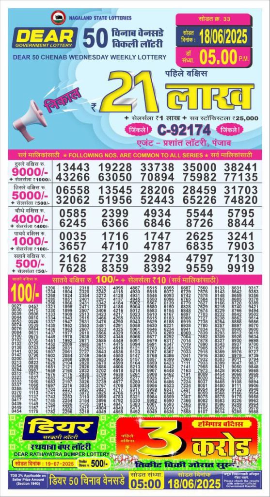 Dear 50 chenab Wednesday weekly lottery 5 pm result 18-6-25 Results Editorial Staff June 18, 2025 Leave a Comment on Dear 50 chenab Wednesday weekly lottery 5 pm result 18-6-25 Posted in Dear 50 Lottery 5 PM Result Share: XFacebookPinterestRedditVKDiggLinkedinMix Related Results Dear 50 Ravi Sunday Weekly Lottery 5 PM Result 27-07-25 Dear 50 sutluj friday weekly lottery 5 pm result 25-7-25 Dear 50 chenab Wednesday weekly lottery 5 pm result 23-7-25 Dear 50 jhelum monday weekly lottery 5 pm result 21-7-25 Dear 50 ravi sunday weekly lottery 5 pm result 20-7-25 Dear 50 sutluj friday weekly lottery 5 pm result 18-7-25 Dear 50 chenab Wednesday weekly lottery 5 pm result 16-7-25 Author: Results Editorial Staff