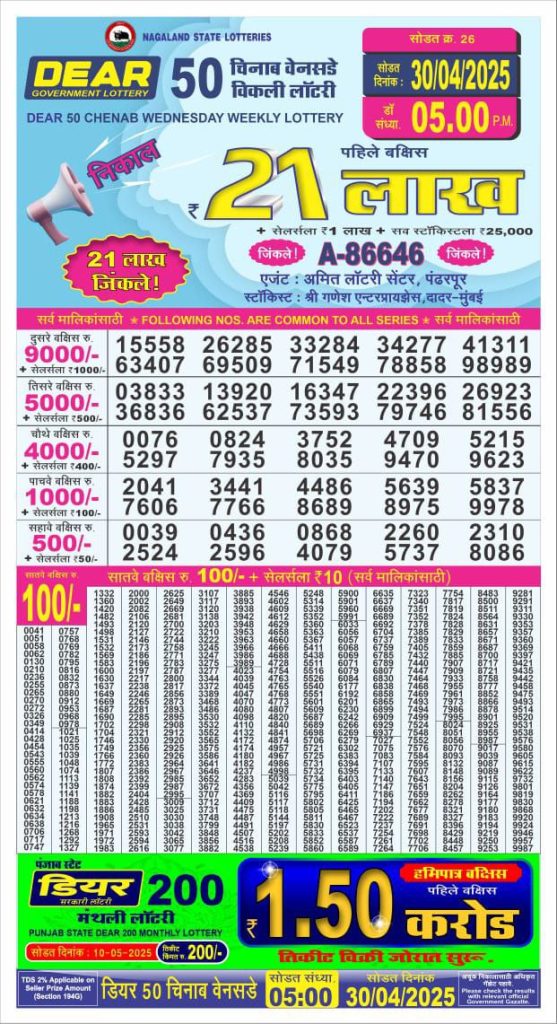 Dear 50 chenab Wednesday weekly lottery 5 pm result 30-4-25 Results Editorial Staff April 30, 2025 Leave a Comment on Dear 50 chenab Wednesday weekly lottery 5 pm result 30-4-25 Posted in Dear 50 Lottery 5 PM Result Share: XFacebookPinterestRedditVKDiggLinkedinMix Related Results Dear 50 Ravi Sunday Weekly Lottery 5 PM Result 27-07-25 Dear 50 sutluj friday weekly lottery 5 pm result 25-7-25 Dear 50 chenab Wednesday weekly lottery 5 pm result 23-7-25 Dear 50 jhelum monday weekly lottery 5 pm result 21-7-25 Dear 50 ravi sunday weekly lottery 5 pm result 20-7-25 Dear 50 sutluj friday weekly lottery 5 pm result 18-7-25 Dear 50 chenab Wednesday weekly lottery 5 pm result 16-7-25 Author: Results Editorial Staff