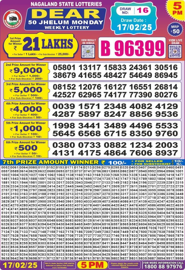 Dear 50 jhelum monday weekly lottery 5 pm result 17-2-25 site editor February 17, 2025 Leave a Comment on Dear 50 jhelum monday weekly lottery 5 pm result 17-2-25 Posted in Dear 50 Lottery 5 PM Result Share: XFacebookPinterestRedditVKDiggLinkedinMix Related Results Dear 50 Ravi Sunday Weekly Lottery 5 PM Result 27-07-25 Dear 50 sutluj friday weekly lottery 5 pm result 25-7-25 Dear 50 chenab Wednesday weekly lottery 5 pm result 23-7-25 Dear 50 jhelum monday weekly lottery 5 pm result 21-7-25 Dear 50 ravi sunday weekly lottery 5 pm result 20-7-25 Dear 50 sutluj friday weekly lottery 5 pm result 18-7-25 Dear 50 chenab Wednesday weekly lottery 5 pm result 16-7-25 Author: site editor