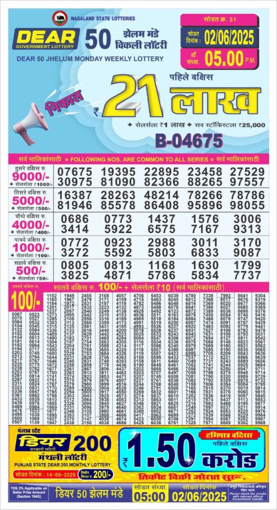 Dear 50 jhelum monday weekly lottery 5 pm result 2-6-25 Results Editorial Staff June 2, 2025 Leave a Comment on Dear 50 jhelum monday weekly lottery 5 pm result 2-6-25 Posted in Dear 50 Lottery 5 PM Result Share: XFacebookPinterestRedditVKDiggLinkedinMix Related Results Dear 50 Ravi Sunday Weekly Lottery 5 PM Result 27-07-25 Dear 50 sutluj friday weekly lottery 5 pm result 25-7-25 Dear 50 chenab Wednesday weekly lottery 5 pm result 23-7-25 Dear 50 jhelum monday weekly lottery 5 pm result 21-7-25 Dear 50 ravi sunday weekly lottery 5 pm result 20-7-25 Dear 50 sutluj friday weekly lottery 5 pm result 18-7-25 Dear 50 chenab Wednesday weekly lottery 5 pm result 16-7-25 Author: Results Editorial Staff