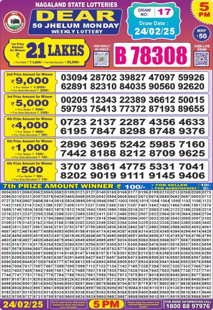 Dear 50 jhelum monday weekly lottery 5 pm result 24-2-25 site editor February 24, 2025 Leave a Comment on Dear 50 jhelum monday weekly lottery 5 pm result 24-2-25 Posted in Results Share: XFacebookPinterestRedditVKDiggLinkedinMix Related Results Punjab State Dear 200 Monthly Lottery 6pm Result 07-02-26 Punjab State Lohri Bumper Lottery Result 2026 Live Updates Dear X-Mas Bumper 6pm Lottery Result 27-12-25 Punjab State Dear 100 Monthly Lottery 7pm Result 09-12-25 Punjab State Lottery Dear 100 Monthly 7pm Result 11-11-2025 Dear 2000 Monthly Lottery 7pm Result 08-11-25 Check Now Dear Puja Bumper Lottery Result 11-10-25 Publish Author: site editor