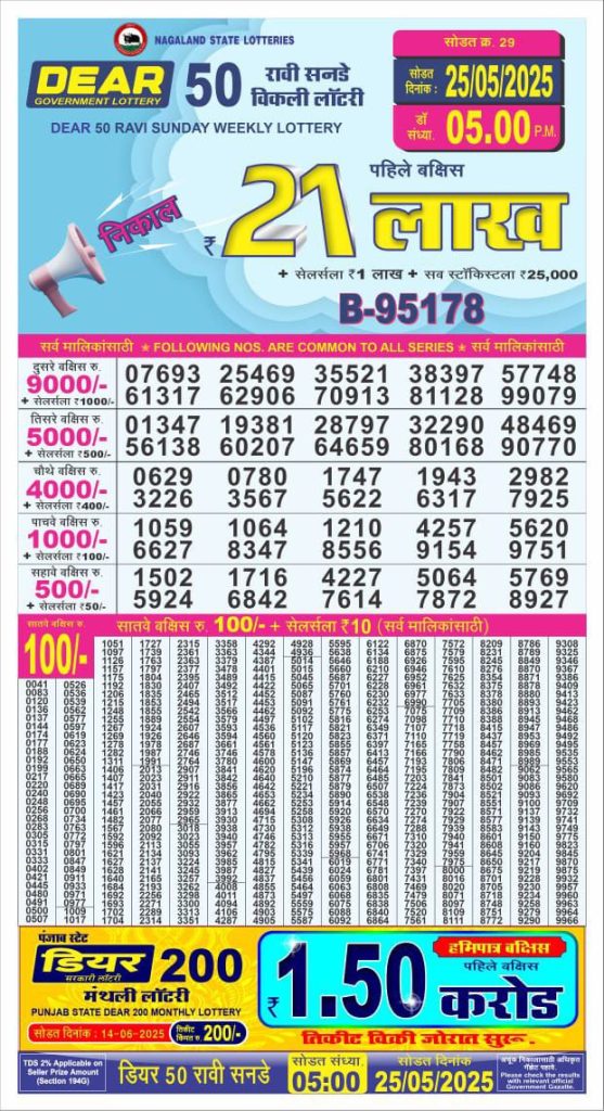 Dear 50 ravi sunday weekly lottery 5 pm result 25-5-25 Results Editorial Staff May 25, 2025 Leave a Comment on Dear 50 ravi sunday weekly lottery 5 pm result 25-5-25 Posted in Dear 50 Lottery 5 PM Result Share: XFacebookPinterestRedditVKDiggLinkedinMix Related Results Dear 50 Ravi Sunday Weekly Lottery 5 PM Result 27-07-25 Dear 50 sutluj friday weekly lottery 5 pm result 25-7-25 Dear 50 chenab Wednesday weekly lottery 5 pm result 23-7-25 Dear 50 jhelum monday weekly lottery 5 pm result 21-7-25 Dear 50 ravi sunday weekly lottery 5 pm result 20-7-25 Dear 50 sutluj friday weekly lottery 5 pm result 18-7-25 Dear 50 chenab Wednesday weekly lottery 5 pm result 16-7-25 Author: Results Editorial Staff
