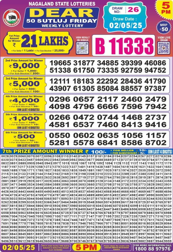 Dear 50 sutluj friday weekly lottery 5 pm result 2-5-25 Results Editorial Staff May 2, 2025 Leave a Comment on Dear 50 sutluj friday weekly lottery 5 pm result 2-5-25 Posted in Dear 50 Lottery 5 PM Result Share: XFacebookPinterestRedditVKDiggLinkedinMix Related Results Dear 50 Ravi Sunday Weekly Lottery 5 PM Result 27-07-25 Dear 50 sutluj friday weekly lottery 5 pm result 25-7-25 Dear 50 chenab Wednesday weekly lottery 5 pm result 23-7-25 Dear 50 jhelum monday weekly lottery 5 pm result 21-7-25 Dear 50 ravi sunday weekly lottery 5 pm result 20-7-25 Dear 50 sutluj friday weekly lottery 5 pm result 18-7-25 Dear 50 chenab Wednesday weekly lottery 5 pm result 16-7-25 Author: Results Editorial Staff