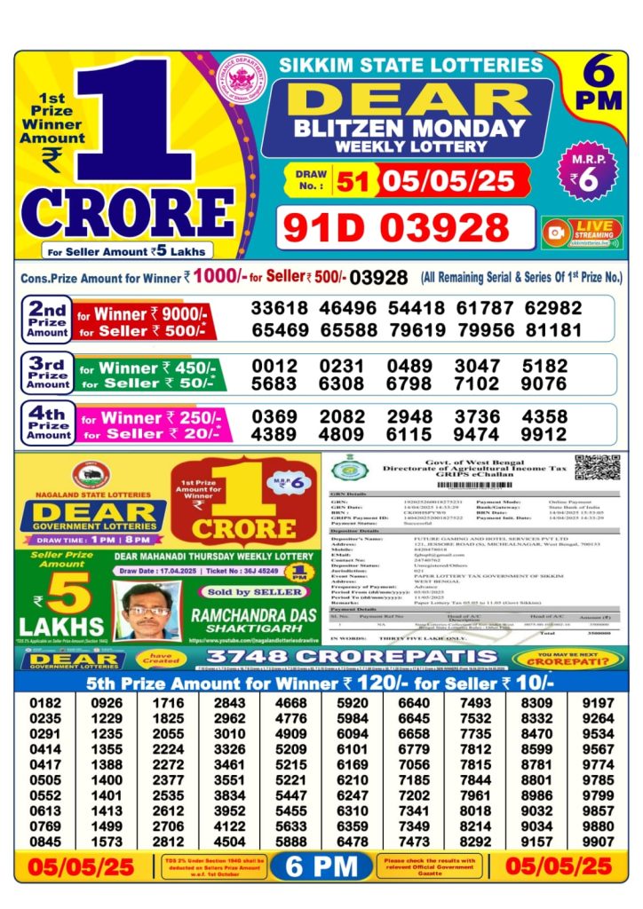 Dear blitzen monday weekly lottery 6 pm result 5-5-25 Results Editorial Staff May 5, 2025 Leave a Comment on Dear blitzen monday weekly lottery 6 pm result 5-5-25 Posted in Dear Lottery 6 PM Result Share: XFacebookPinterestRedditVKDiggLinkedinMix Dear Legend Monday Weekly Lottery Result Update 📅 Date: 05 May 2025 ⏰ Draw Time: 6:00 PM 🟢 Result Declared 🔗 View previous Dear Lottery 6 PM Result results Related Results Dear Legend Monday Weekly Lottery 6pm Result 02-03-26 Dear Empire Sunday Weekly Lottery 6pm Result 01-03-26 Dear Elite Saturday Weekly Lottery 6pm Result 28-02-26 Dear Crown Friday Weekly Lottery 6pm Result 27-02-26 Dear Supreme Thursday Weekly Lottery 6pm Result 26-02-26 Dear Regal Wednesday Weekly Lottery 6pm Result 25-02-26 Dear Prestige Tuesday Weekly Lottery 6pm Result 24-02-26 Author: Results Editorial Staff