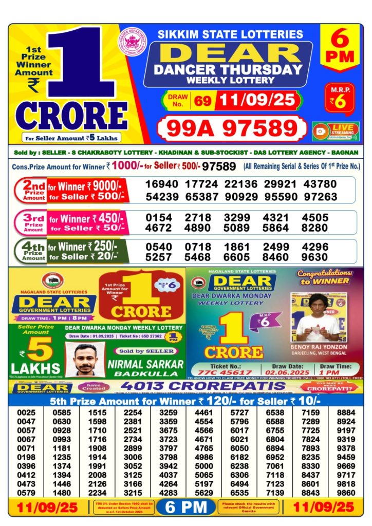 Dear Dancer Thursday Weekly Lottery 6 PM Result 11-09-25