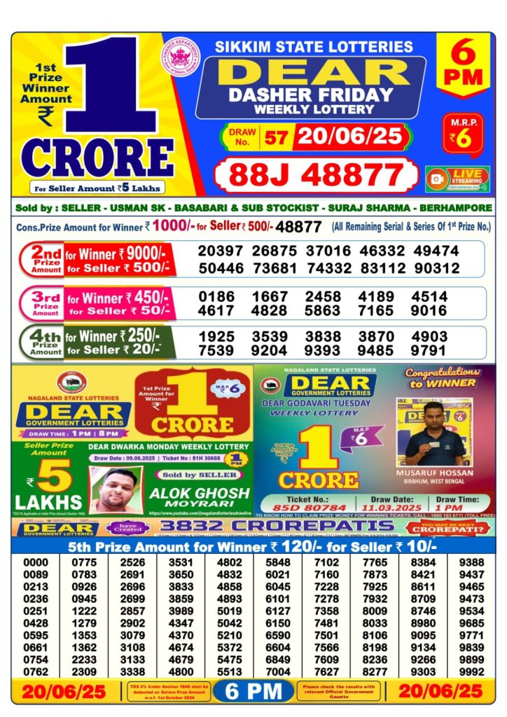 Dear dasher friday weekly lottery 6 pm result 20-6-25 Results Editorial Staff June 20, 2025 Leave a Comment on Dear dasher friday weekly lottery 6 pm result 20-6-25 Posted in Dear Lottery 6 PM Result Share: XFacebookPinterestRedditVKDiggLinkedinMix Dear Legend Monday Weekly Lottery Result Update 📅 Date: 20 June 2025 ⏰ Draw Time: 6:00 PM 🟢 Result Declared 🔗 View previous Dear Lottery 6 PM Result results Related Results Dear Legend Monday Weekly Lottery 6pm Result 02-03-26 Dear Empire Sunday Weekly Lottery 6pm Result 01-03-26 Dear Elite Saturday Weekly Lottery 6pm Result 28-02-26 Dear Crown Friday Weekly Lottery 6pm Result 27-02-26 Dear Supreme Thursday Weekly Lottery 6pm Result 26-02-26 Dear Regal Wednesday Weekly Lottery 6pm Result 25-02-26 Dear Prestige Tuesday Weekly Lottery 6pm Result 24-02-26 Author: Results Editorial Staff