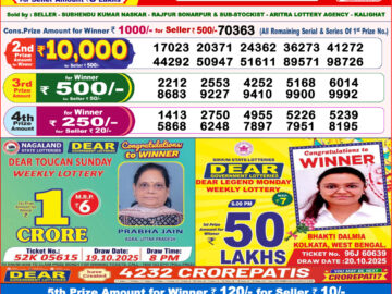 2025-12-31 Dear Dream Wednesday Weekly Lottery 8pm Result 31-12-25  2025-12-31 Punjab State Dear 50 Buster Weekly Lottery 6pm Result 31-12-25  2025-12-31 Dear Regal Wednesday Weekly Lottery 6pm Result 31-12-25  2025-12-31 Labh Laxmi Delight Wednesday Weekly Lottery 4pm Result 31-12-25  2025-12-31 Dear Spark Wednesday Weekly Lottery 1pm Result 31-12-25  2025-12-30 Dear Destiny Tuesday Weekly Lottery 8pm Result 30-12-25  2025-12-30 Punjab State Dear 50 Bronco Lottery 6pm Result 30-12-25  2025-12-30 Dear Prestige Tuesday Weekly Lottery 6pm Result 30-12-25  2025-12-30 Labh Laxmi Charm Tuesday Weekly Lottery 4pm Result 30-12-25